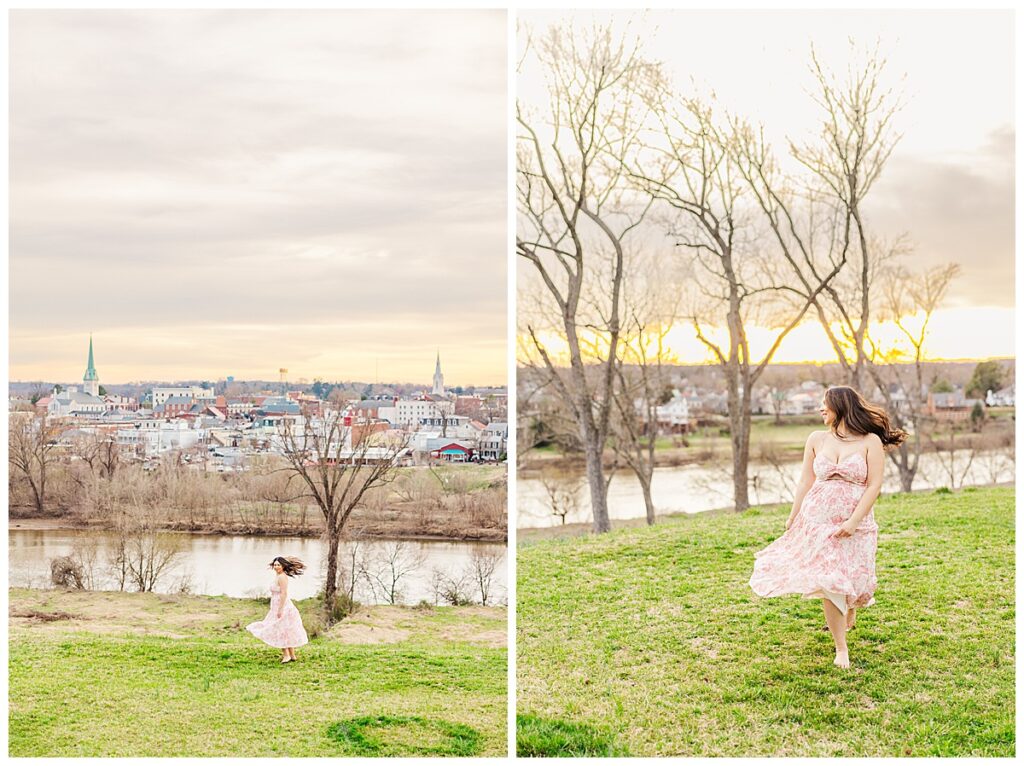 Emma’s spring senior session in historic, downtown Fredericksburg was an absolute dream! She’s graduating from Colonial Forge High School this year, but not only that — she’s also graduating with her cosmetology degree!! Like seriously, how cool is she?! And as if that’s not impressive enough, her next big adventure is heading off to nursing school! I just know she’s going to absolutely crush it. We had the best time strolling through downtown Fredericksburg, finding all the cutest little nooks and crannies for her photos. The charm of the brick streets, colorful doors, and cozy corners matched Emma’s sweet and bubbly personality perfectly.